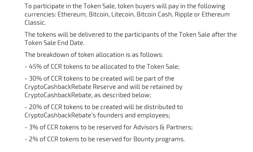 The actual number of CCR Tokens to be received by a contributor depends on the day the contribution is made during the Token Sale period as listed below: